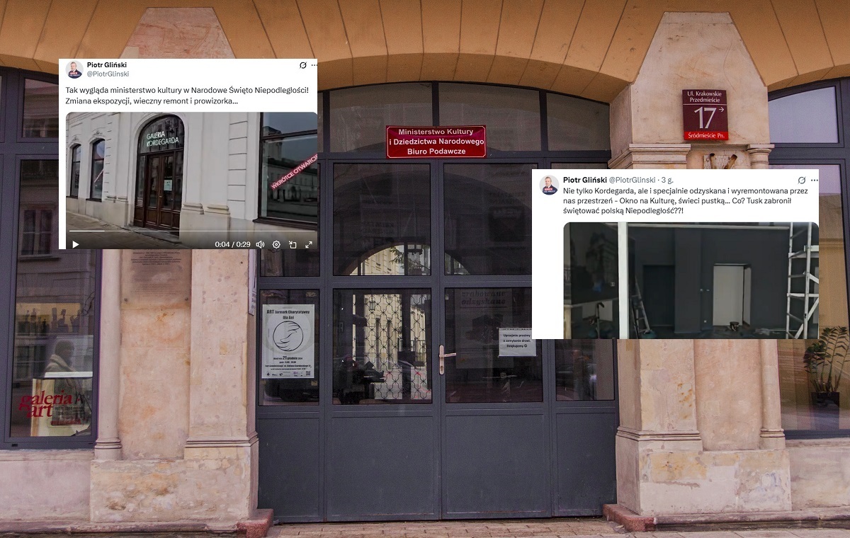 Galeria Narodowego Centrum Kultury Kordegarda na Krakowskim Przedmieściu w Warszawie, nadzorowana przez Ministerstwo Kultury i Dziedzictwa Narodowego, jest teraz zamknięta dla zwiedzających, nie ma wystawionej żadnej ekspozycji, a w środku trwa remont. To wszystko w przededniu Narodowego Święta Niepodległości! „Tusk zabronił świętować polską niepodległość?!” – zareagował na całą sytuację prof. Piotr Gliński, poseł PiS, były minister kultury.